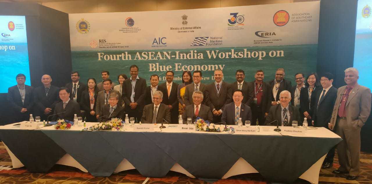 The 4th ASEAN- India Workshop on Blue Economy is organized by the Ministry of External Affairs, Govt. of India (MEA) in collaboration with the Republic of Indonesia and regional think tanks (RIS, ASEAN, NMF, and ERIA) at Hotel Le Meridian, New Delhi during 15-16 Dec 2022.
