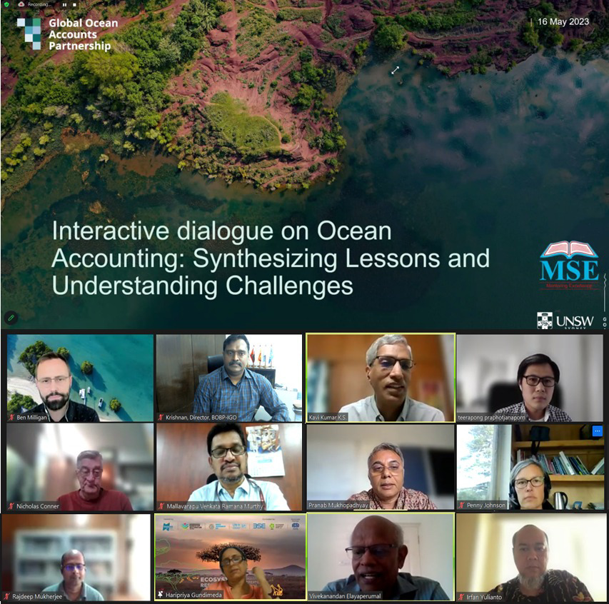 Australia-India Indo-Pacific Oceans Initiative Partnership (AIIPOIP) and the Madras School of Economics (MSE) organized a virtual webinar on “Interactive dialogue on Ocean Accounting: Synthesizing Lessons and Understanding Challenges” on 16th May 2023. This interactive dialogue is part of the AIIPOIP project, “Building an Australia-India Community of Practice on Ocean Accounting” to advance the goals of India’s Indo-Pacific Oceans Initiative (IPOI).